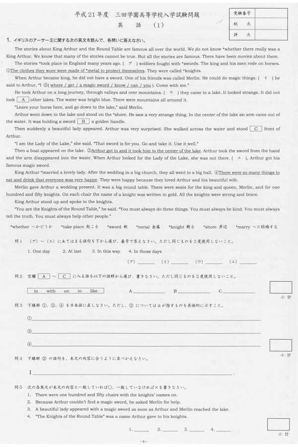平成21年度入試過去問題: 数学(問題) 英語(問題)