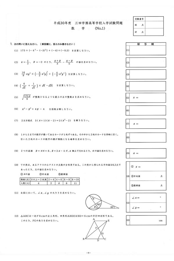 ■平成30年度入試過去問題(数学 問題)