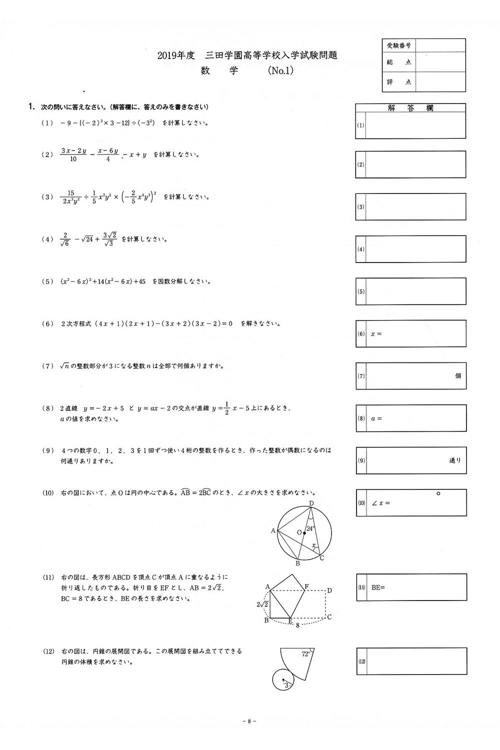 三田学園高等学校の入試過去問題[問題編]、資料(パンフレット)請求、入試(受験)、説明会などを掲載