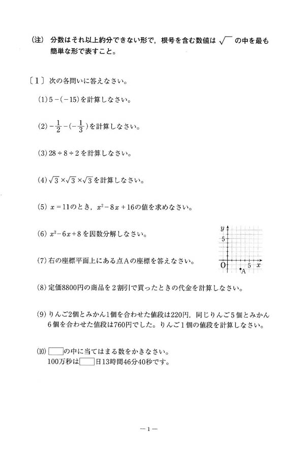 ■平成25年度入試過去問題(数学 問題)