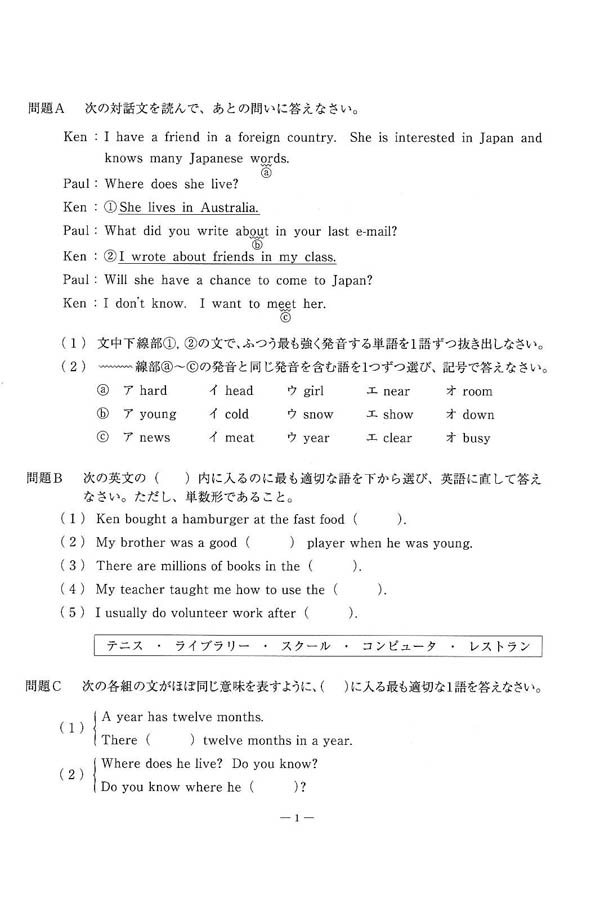 ■平成25年度入試過去問題(英語 問題)