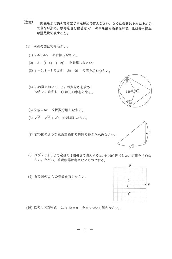 令和5年度入試過去問題 一次: 数学(問題) 英語(問題)