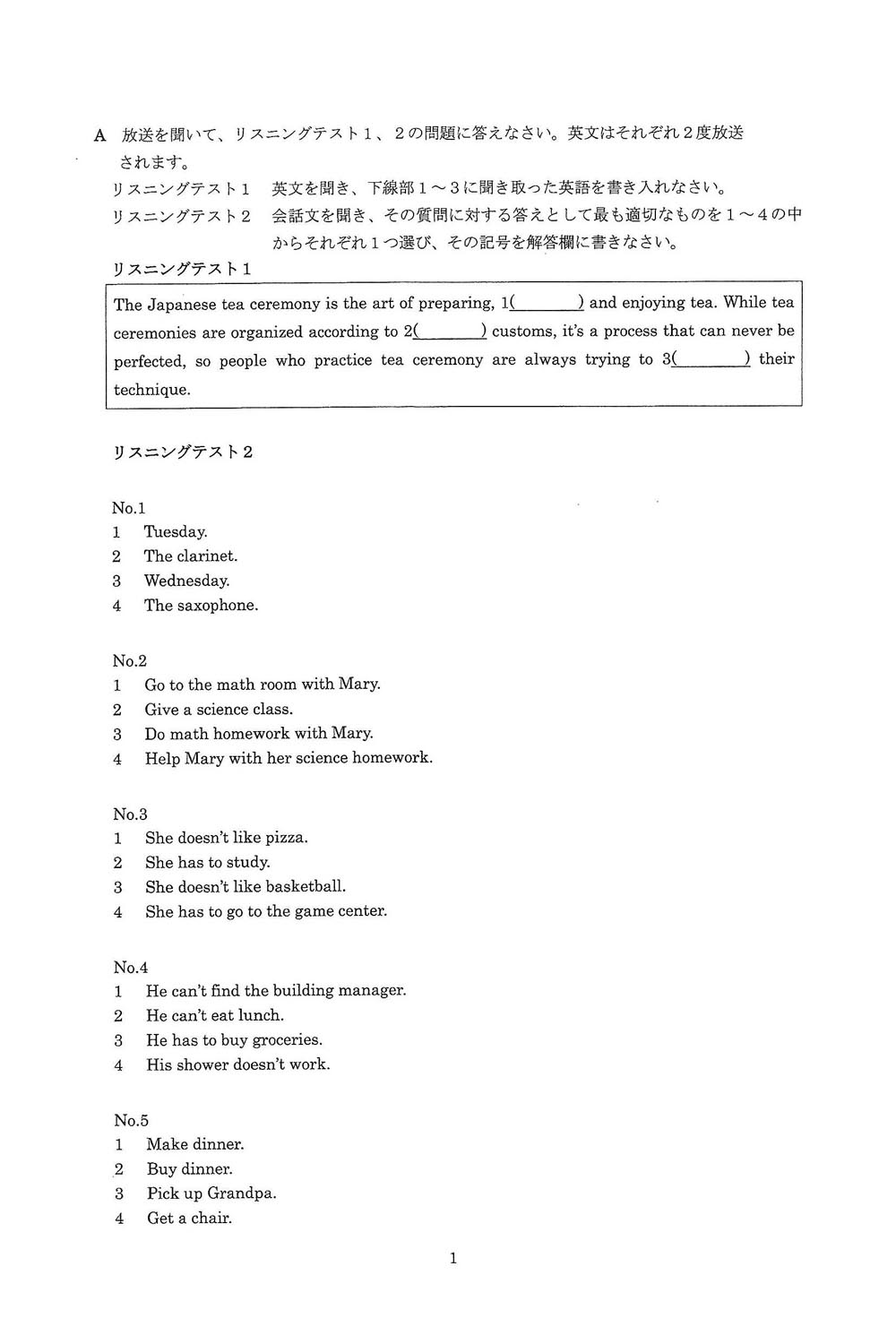 2020年度入試過去問題: 数学(問題) 英語(問題)