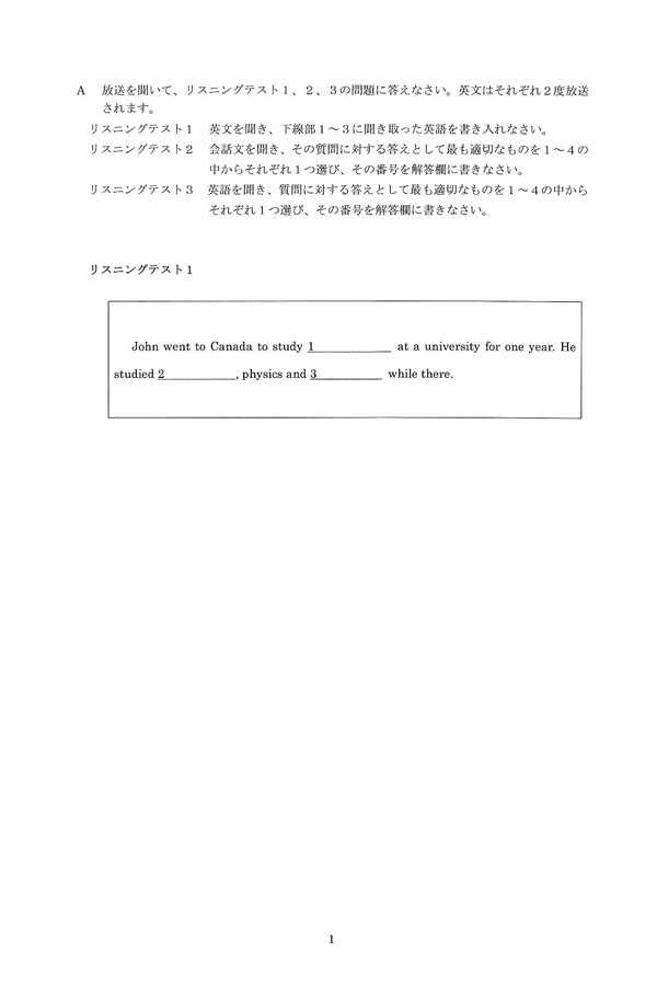 2025年度入試過去問題 1次入試(1教科受験): 英語(問題)