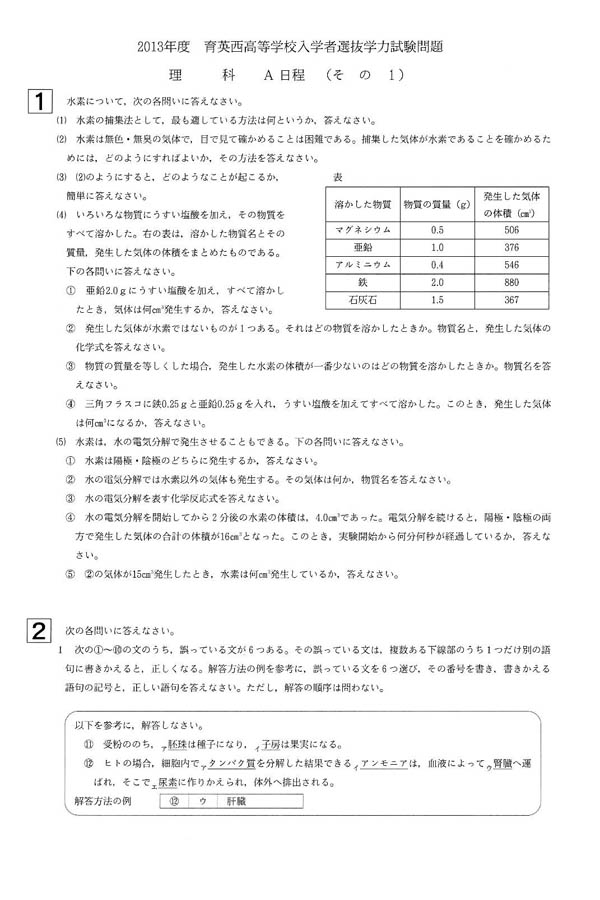 平成25年度入試過去問題: 数学(問題) 英語(問題) 理科(問題)