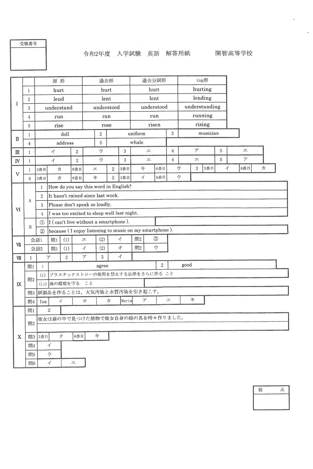 ■2020年度入試過去問題(英語 解答)