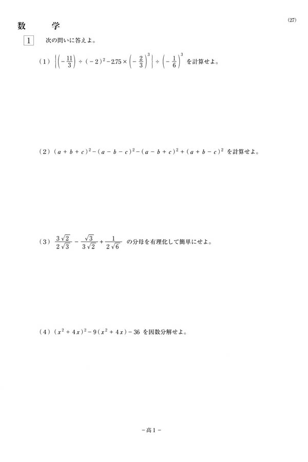 平成27年度入試過去問題: 数学(問題) 英語(問題)
