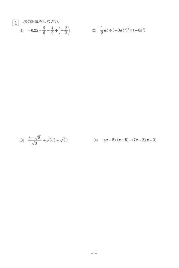 2025年度入試過去問題 : 数学(問題) 英語(問題)
