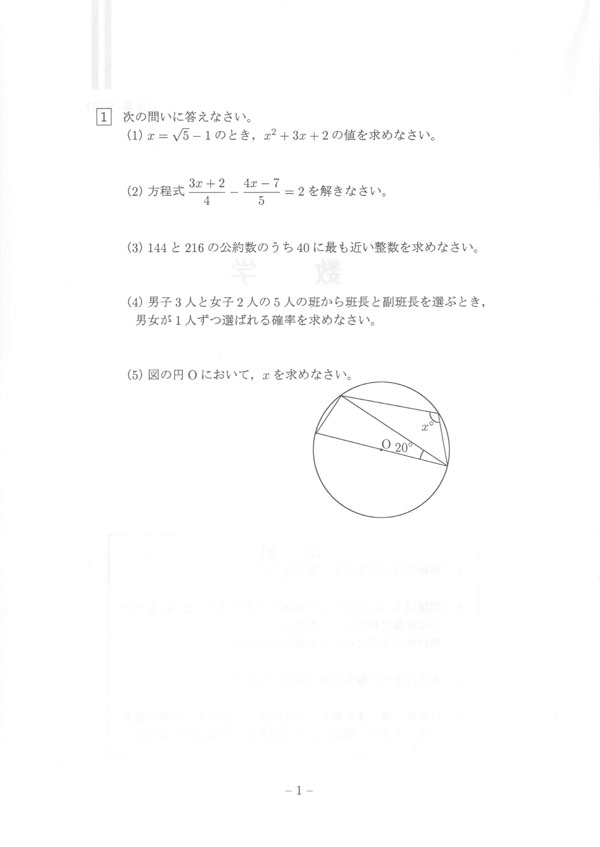 平成20年度入試過去問題 第2回: 数学(問題) 英語(問題)