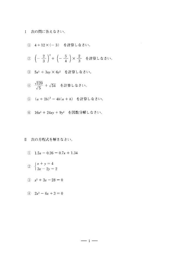 平成26年度入試過去問題: 数学(問題) 英語(問題)