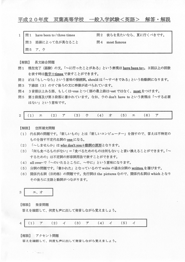 ■平成20年度入試過去問題(英語 解答)